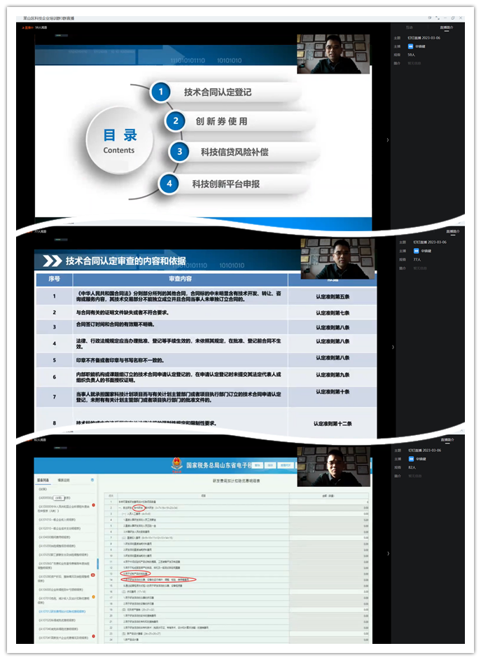 | 為了更好地幫助轄區(qū)企業(yè)知曉了解、用好并享受各類(lèi)科技創(chuàng)新優(yōu)惠政策,讓企業(yè)人員更清晰、精準(zhǔn)的掌握相關(guān)科技創(chuàng)新政策,2023年3月6日下午,萊山區(qū)科技局舉辦了科技政策宣導(dǎo)會(huì)線上培訓(xùn)活動(dòng)。 此次宣導(dǎo)會(huì)由萊山區(qū)科技局主辦,煙臺(tái)科源技術(shù)項(xiàng)目管理咨詢有限公司承辦,煙臺(tái)市技術(shù)創(chuàng)新協(xié)會(huì)協(xié)辦,宣導(dǎo)會(huì)特邀主講人科源專(zhuān)家就技術(shù)合同認(rèn)定登記、創(chuàng)新券使用、科技信貸風(fēng)險(xiǎn)補(bǔ)償、科技創(chuàng)新平臺(tái)申報(bào)四個(gè)方面進(jìn)行了詳細(xì)講解,并就部分企業(yè)提出的問(wèn)題進(jìn)行了一一解答。到會(huì)企業(yè)紛紛表示,這次培訓(xùn)干貨很多,對(duì)企業(yè)的幫助也很大。 |